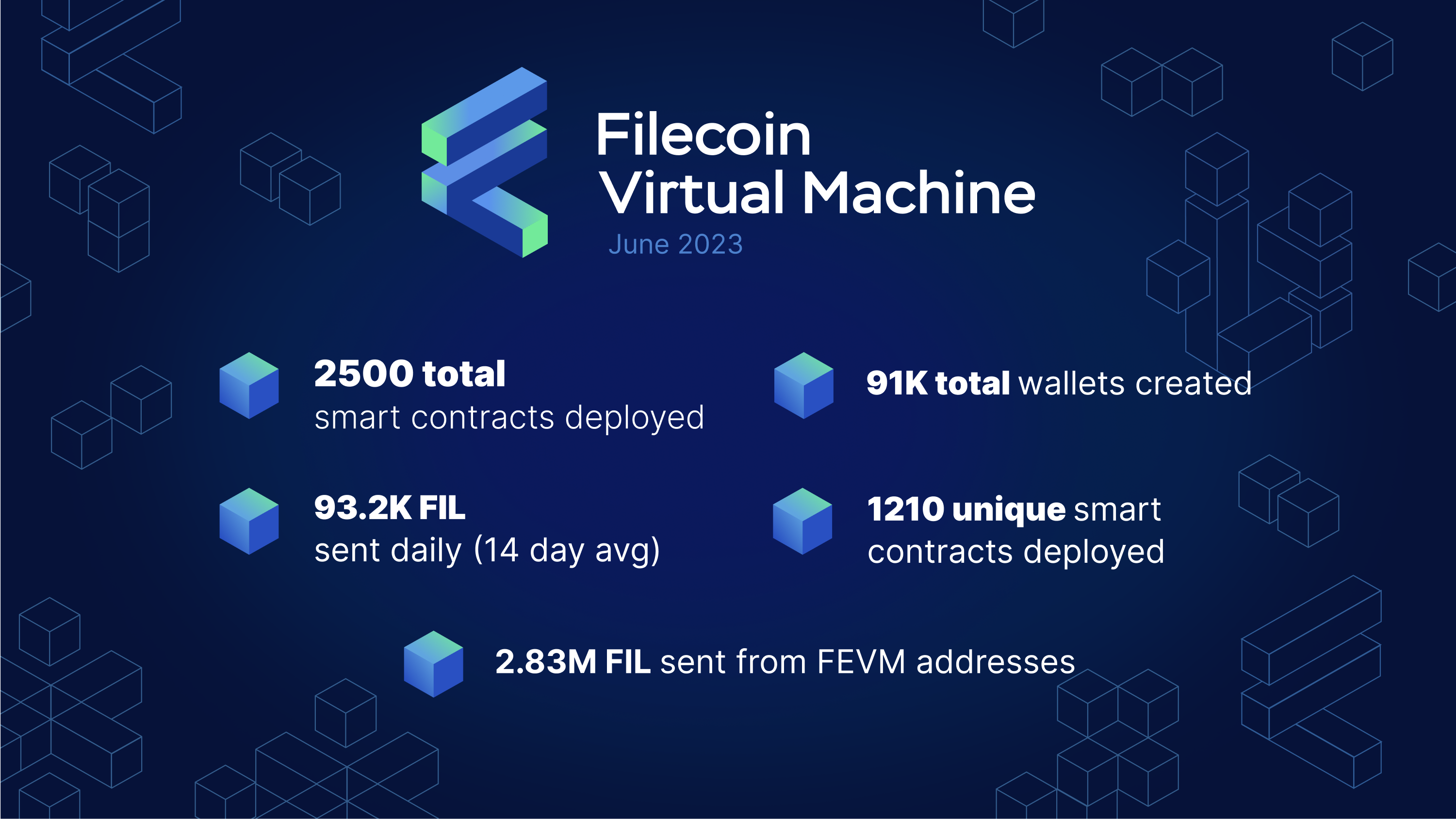 100 days ago, on March 14, 2023, the Filecoin network introduced the first programmable runtime on the Filecoin Virtual Machine and became programmable (re-read the announcement blog post). The launch solidified Filecoin as the L1 uniquely positioned to power the open data economy. Since then, the open ecosystem of developers, storage providers, storage clients and other network participants of Filecoin, the largest open access cloud service, has grown further. Join us as we take a closer look at the notable progress achieved by the FVM since its launch on Filecoin’s mainnet.