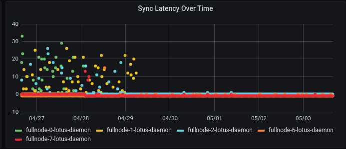 After this optimization came into effect, the Filecoin network has gone from processing around 375,000 miners every 60 epochs to a little over 2,000. This has resulted in an average block sync time that is about twice as fast and a daily state snapshot size reduced by over 20 GB, a nearly 2x improvement! Node operators have seen a significant reduction in average and max block sync times, and an almost complete elimination of instances of large archival nodes falling out of sync.