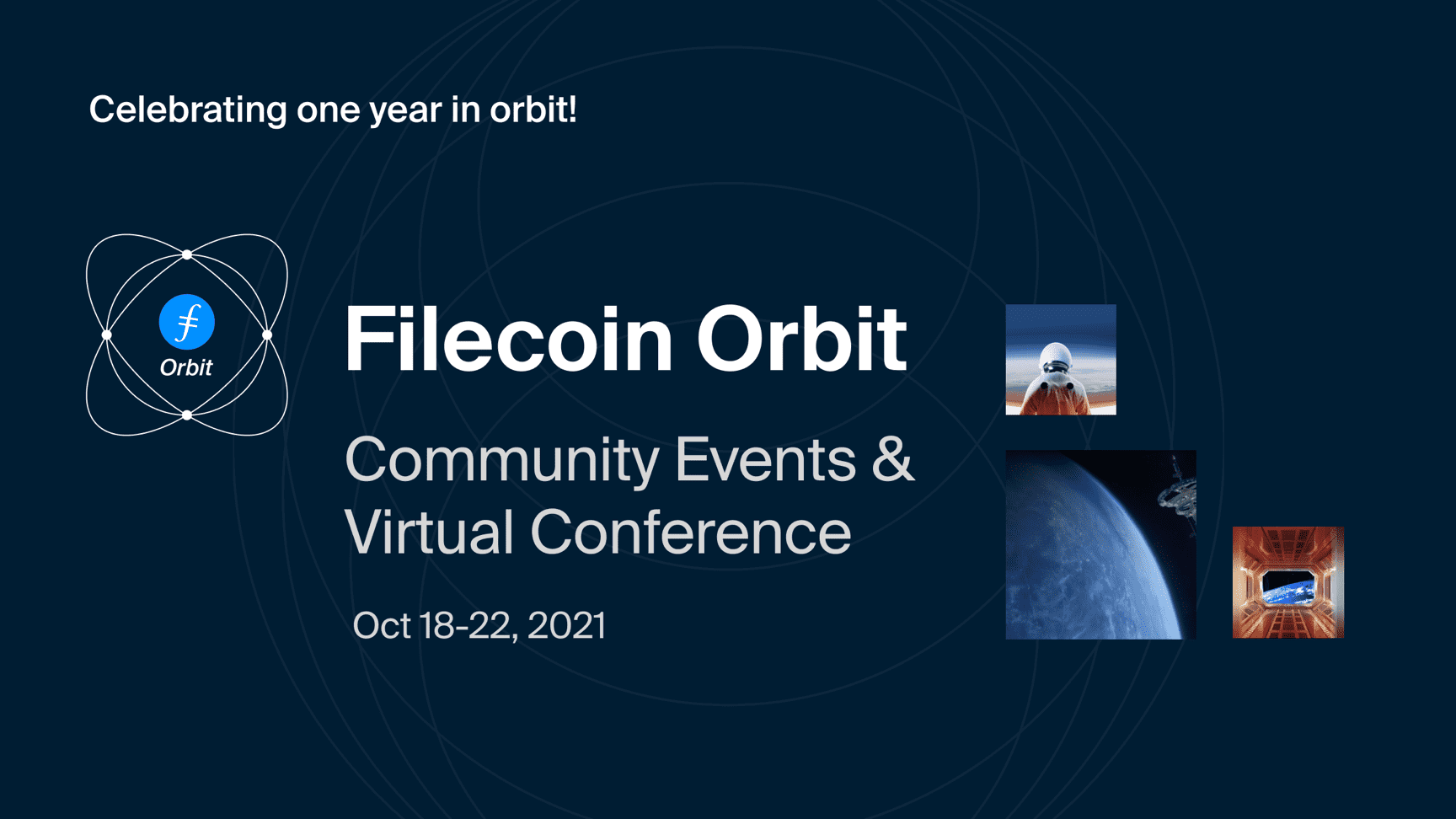 On October 21-22, the Filecoin community is coming together to celebrate with Filecoin Orbit. Join to hear panels, talks, workshops, and demos from across the ecosystem as people review what has been built in the last year, and what lies ahead. And get an early lead on the activities starting on October 18th with community-organized events.