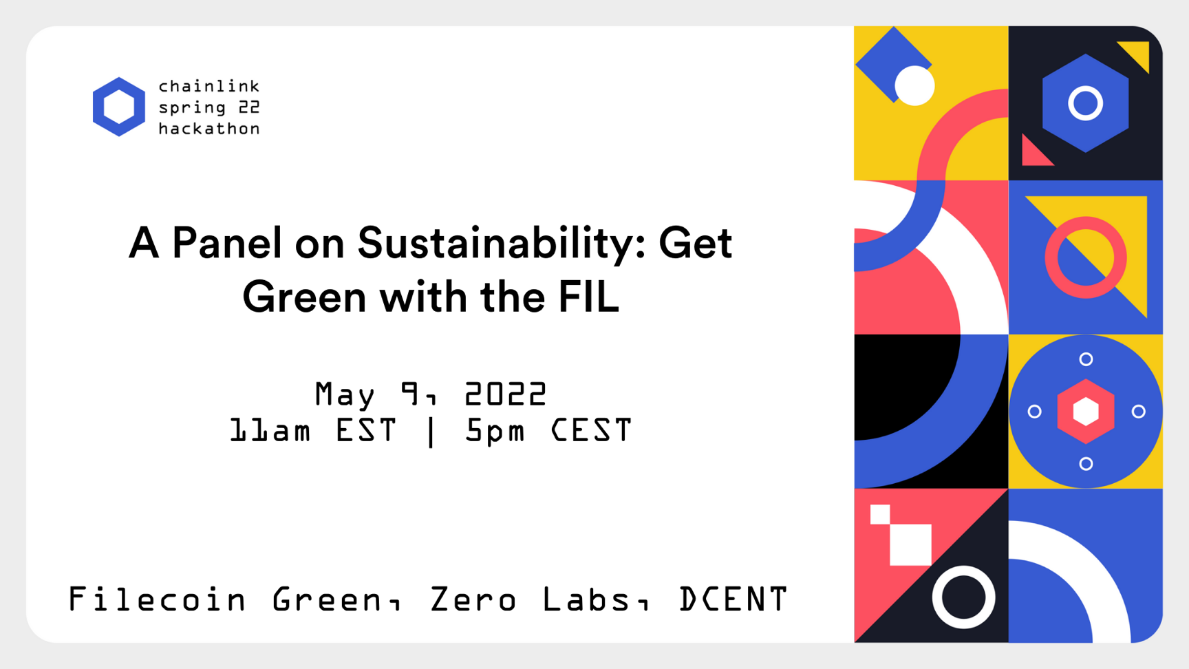 The Chainlink Spring 22 Hackathon featured a panel on sustainability with the Filecoin Green community. Alan Ransil, Hidde Hoogland, Jonathan Waldenfels, and Momcilo Dzunic discussed powering Storage Provider setups with solar energy, building a global marketplace for renewable energy, and the sustainability tools developed by Filecoin Green. A full recording of the panel is available on Youtube.